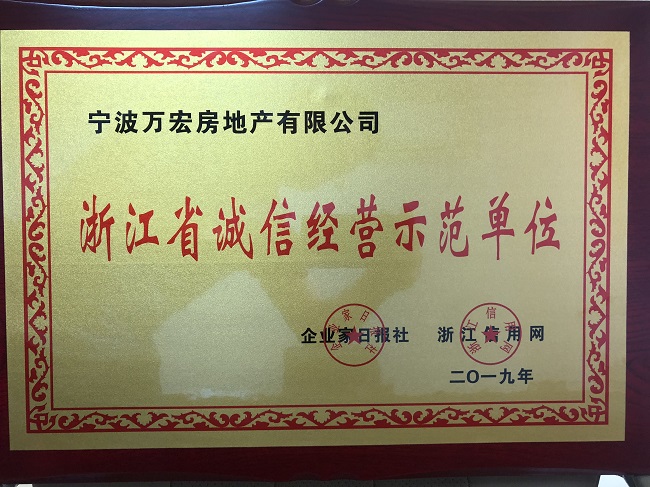 2018年度浙江省誠信經(jīng)營示范單位