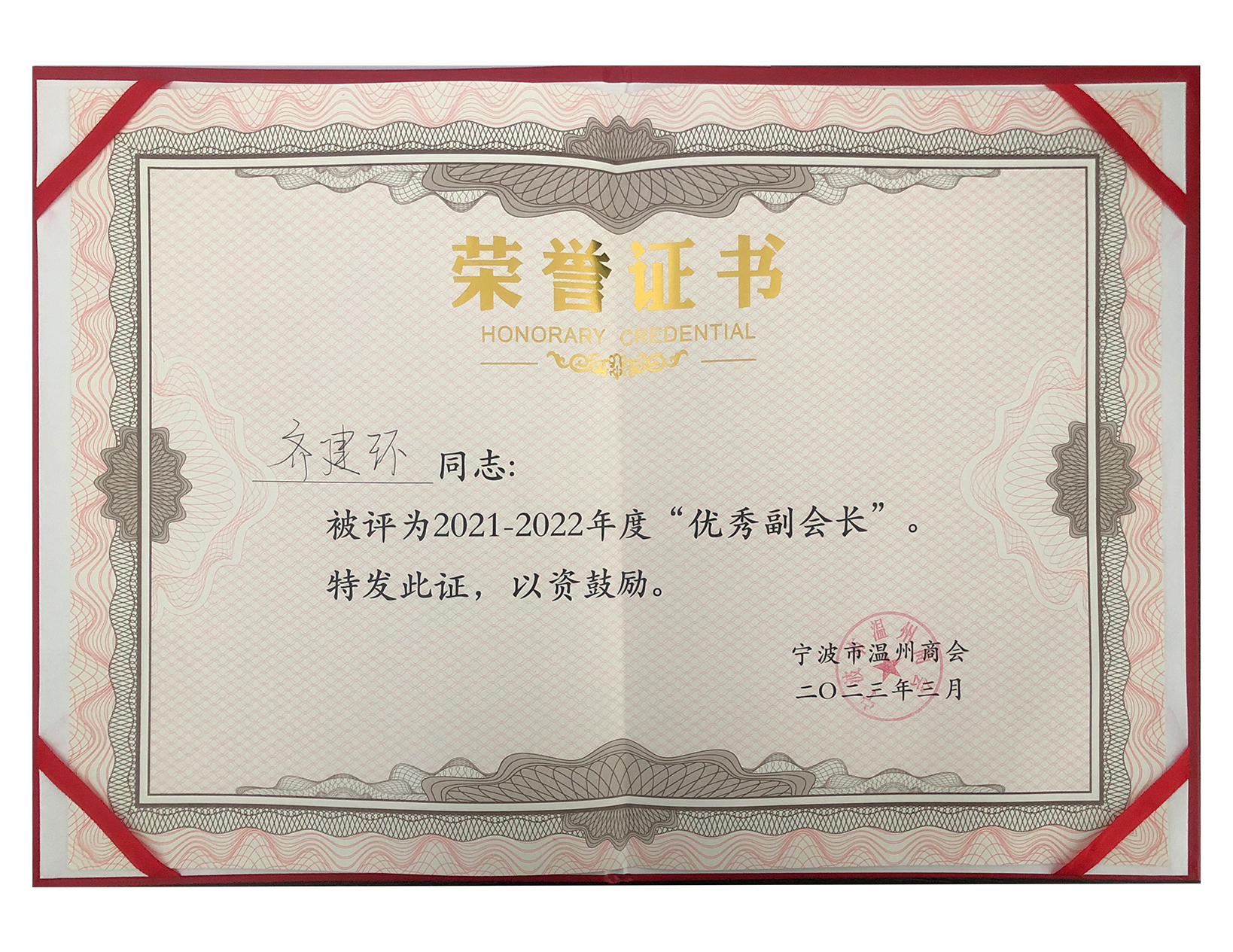 齊建環(huán)先生榮獲2023年度溫州商會(huì)副會(huì)長